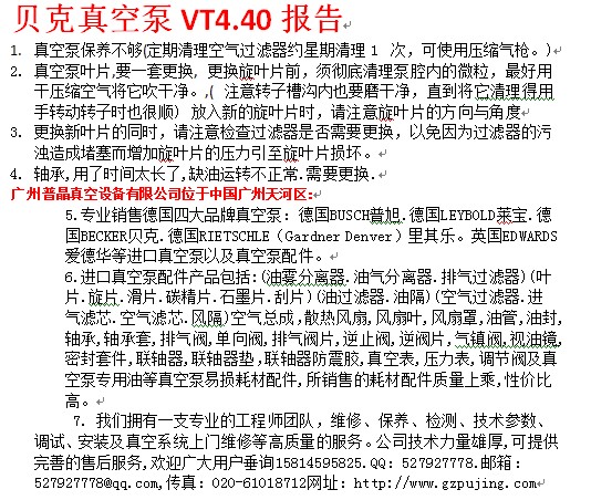 貝克真空泵VT4.40報告